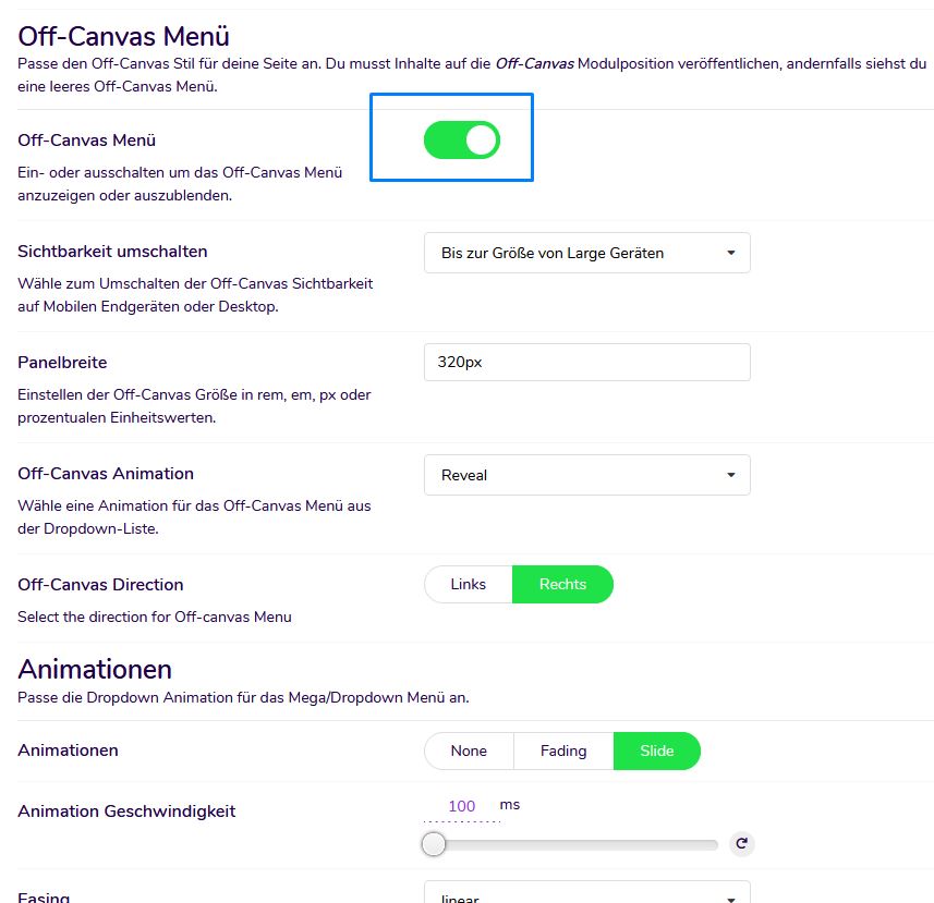 Sobald Sie mit diesen Einstellungen fertig sind, können Sie Ihr eigenes Mega-Menü für einzelne Menüpunkte erstellen. Die Struktur der Menüelemente der Hauptebene entspricht der Struktur Ihres Joomla-Menüs. Standardmäßig werden alle Untermenüelemente automatisch als Dropdown-Menüelemente angezeigt.